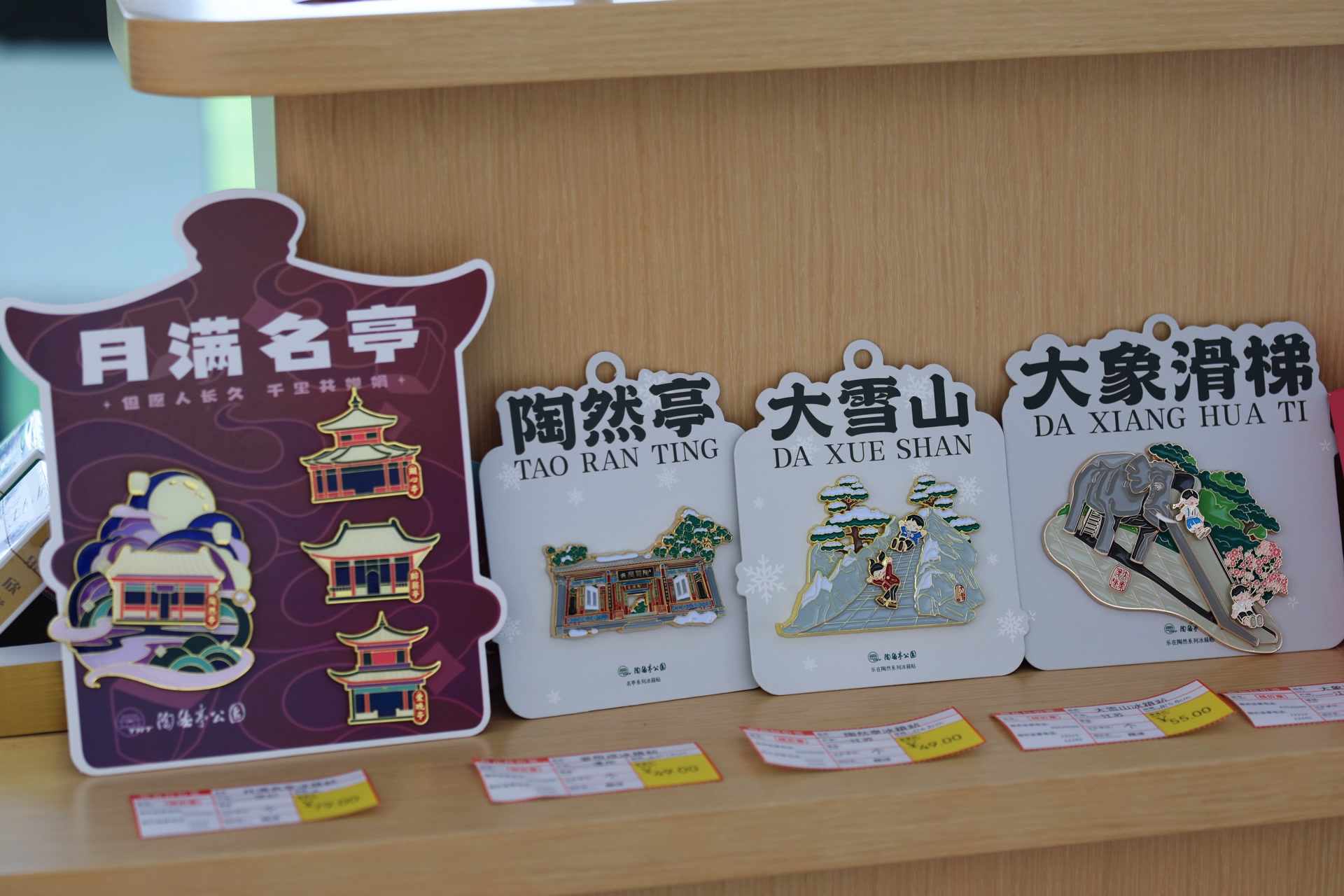 大雪山冰箱贴唤醒80、90后的童年记忆,魁星图文件夹兼具实用与文化感,琳琅满目的文创让游客在选购中加深对双园文化的感知。