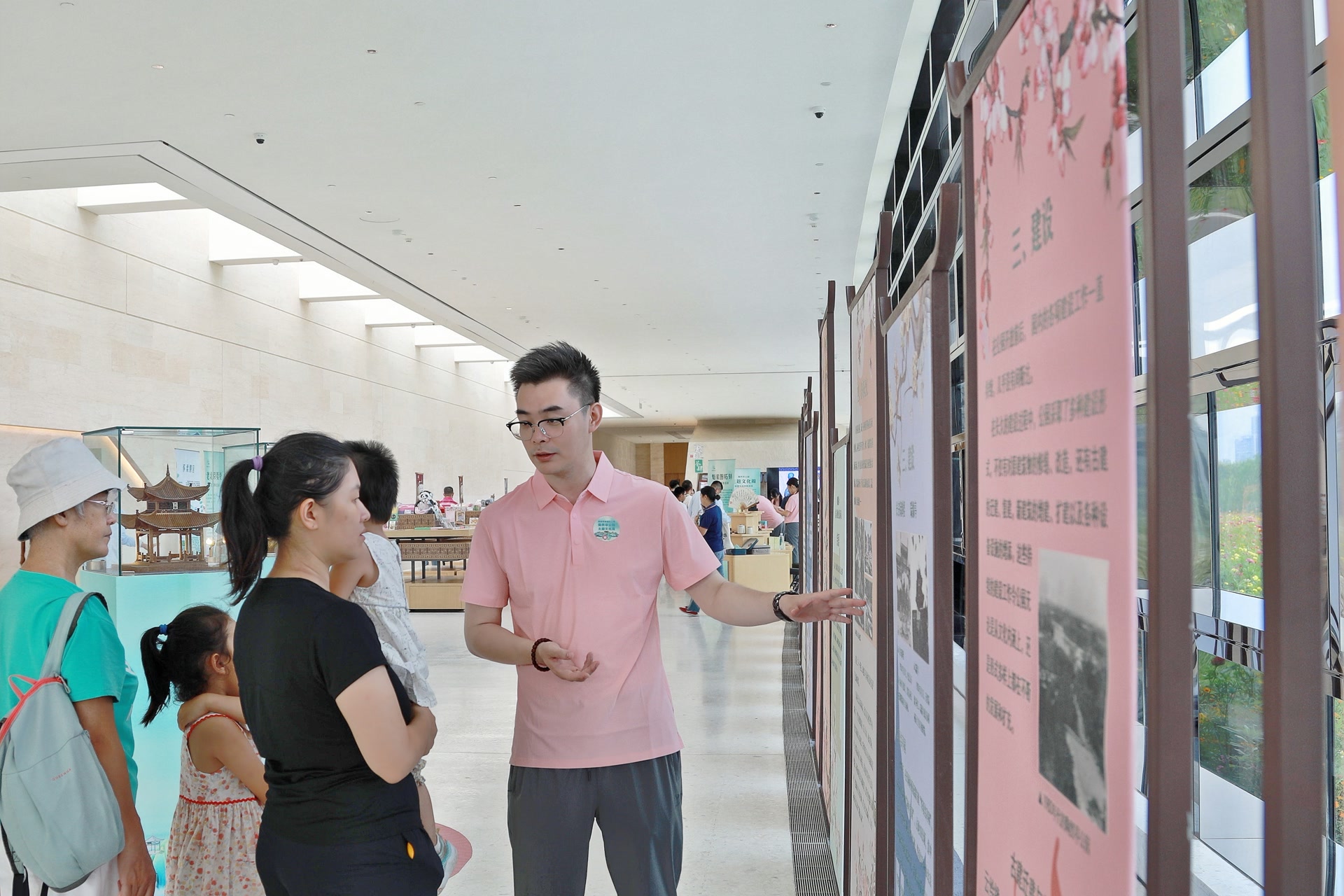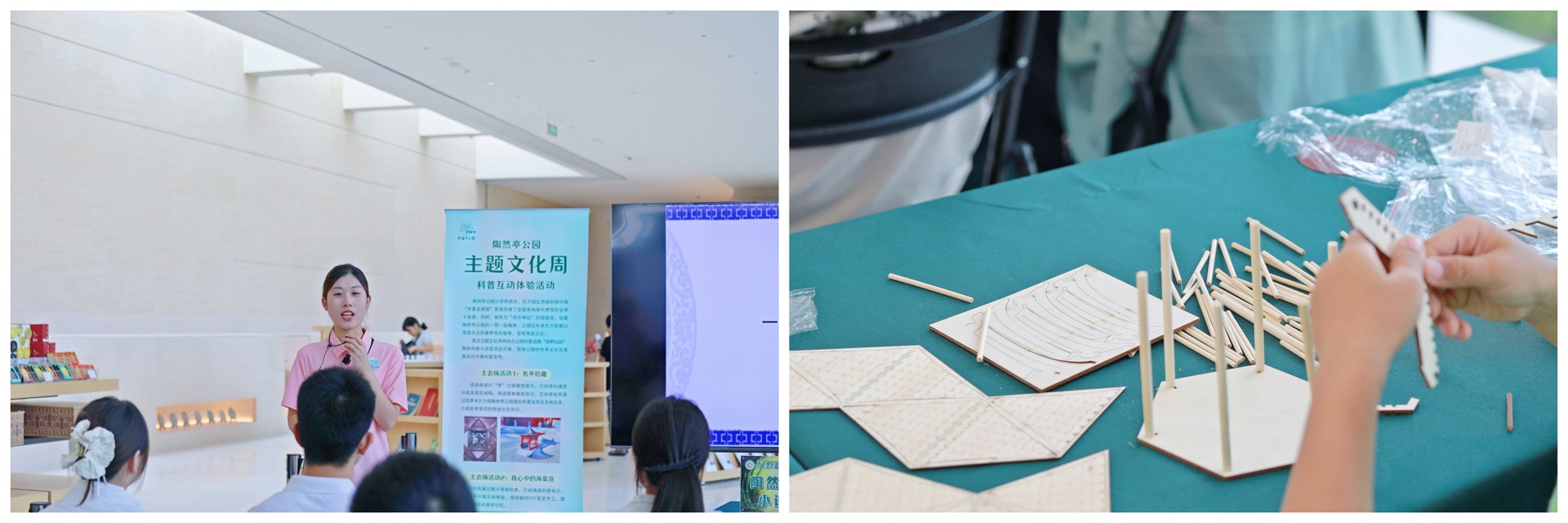 “名亭拾趣”互动体验里,亲子家庭合作拼装亭模型,在动手过程中轻松掌握园林建筑知识,欢声笑语不断;