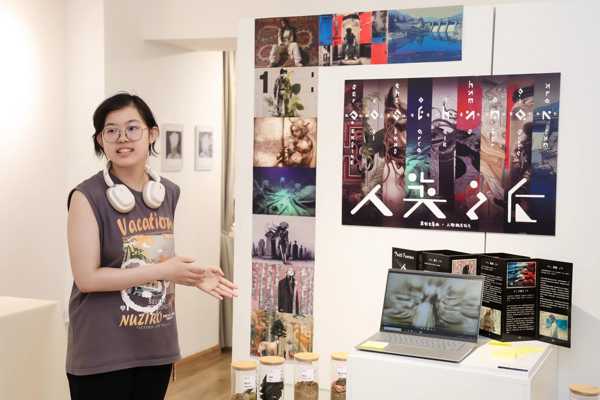 活动期间,学员们逐一介绍参展作品。从基于人工智能算法生成的未来宇宙图景,到结合航天工程原理设计的星际探测场景,从唯美科幻珠宝设计到未来世界价值观探索,作品将科幻想象与科学逻辑有机结合,展示了新生代创作者打破学科壁垒的跨界视野。