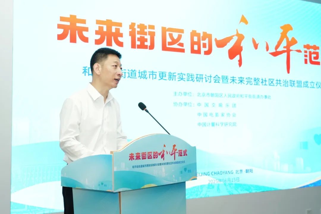 在全场嘉宾的共同见证下,“未来完整社区共治联盟”正式启动。朝阳区副区长刘福泽、街道工委书记赵瑞博携手三家单位代表,共同参与这一重要时刻。