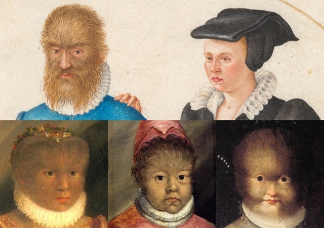 图1.世界上首次有记录的先天性全身多毛症患者彼得鲁斯·贡萨尔维斯(Petrus Gonsalvus 1537-1618)及其妻子(上)和子女(下)。图片来源:Wikipedia