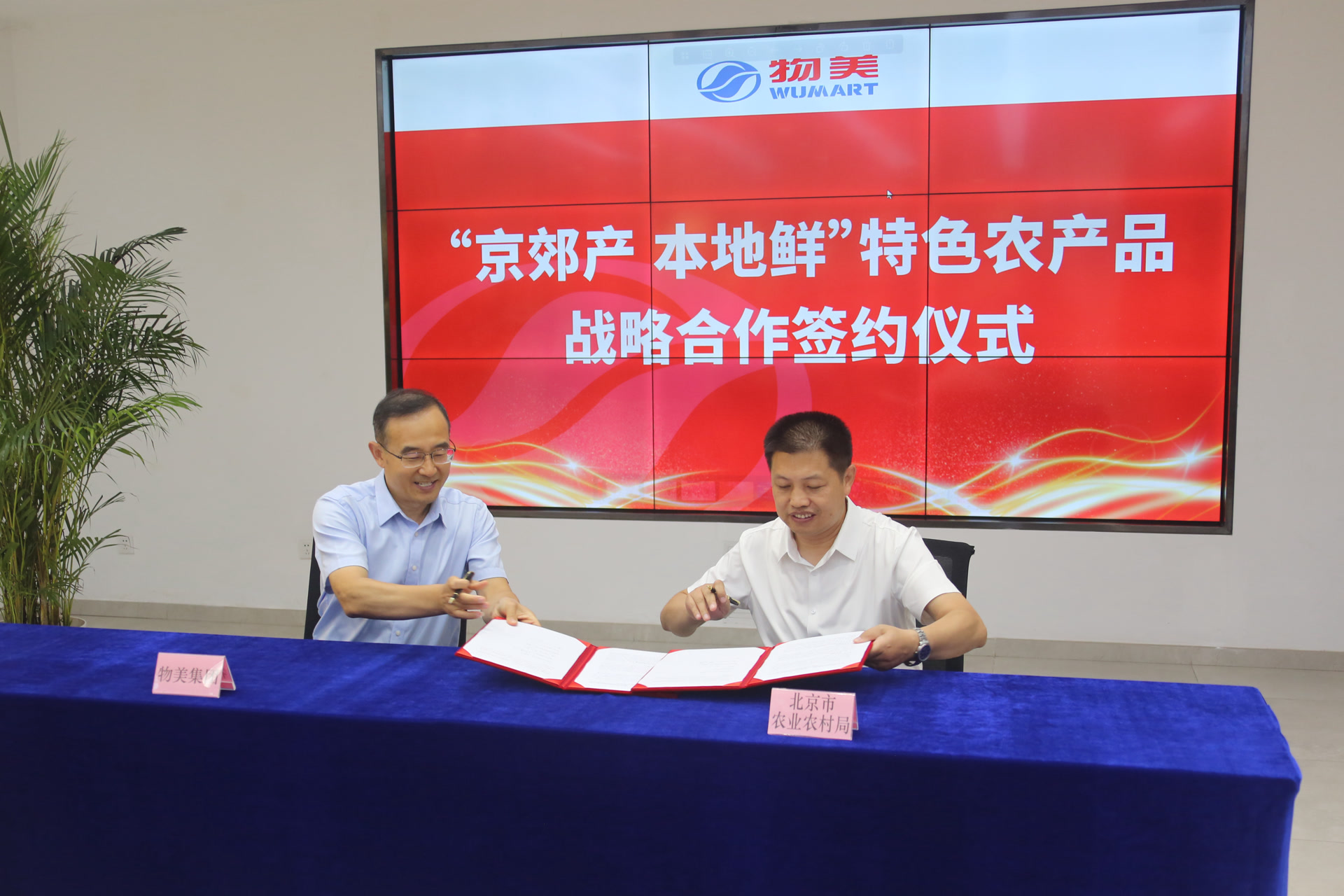 8月19日,北京市农业农村局与物美科技集团有限公司在物美集团总部签订战略合作协议,北京市农业农村局、北京市商务局、物美集团等部门相关领导出席签约仪式。双方就加强京郊农产品产销对接达成战略合作意向,共同拓宽本地农产品销售渠道,提升本地农产品知名度和影响力,促进产业提质增效,带动农民增收,助力首都乡村全面振兴。