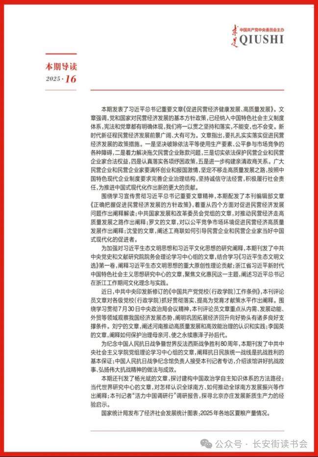 《求是》2025年第16期刊发了习近平总书记的重要文章《促进民营经济健康发展、高质量发展》指出,新时代新征程民营经济发展前景广阔、大有可为。现在政治环境、经济环境、社会环境都十分有利于民营经济发展,广大民营企业和民营企业家大显身手正当其时。要在困难和挑战中看到前途、看到光明、看到未来,保持发展定力、增强发展信心,保持爱拼会赢的精气神。
