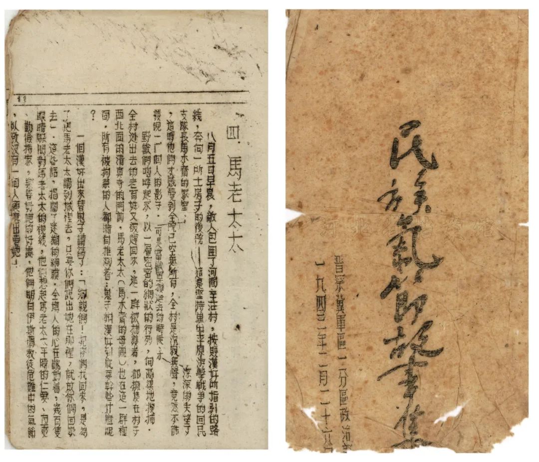 “大节不死 母子两代英雄”是朱德在马本斋病逝后题写的挽联,充满了对马本斋母子的盛赞。河北省档案馆珍藏的一本《民族气节故事集》中,马本斋母亲白文冠的故事跃然纸上。