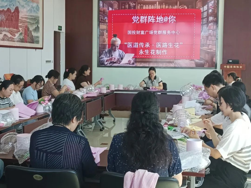 如何让中医文化在楼宇白领心中“落地开花”?近日,太平桥街道国投财富广场党群服务中心联合中国医师协会,开展了一场别开生面的“医道传承·医路生花”活动,给出了生动实践。这场活动将中医养生智慧与永生花手作相结合,吸引了近40名楼宇企业党员及员工踊跃参与。