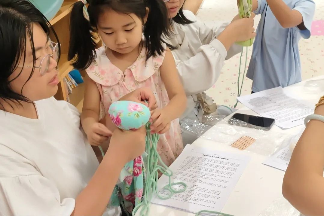 体验工坊更是让大家沉浸式感受中医魅力,“闻香识药”时,蒙眼的孩子们凭嗅觉辨别陈皮、艾草,准确说出“陈皮理气化痰”等药效;穴位按摩擂台里,家长与孩子互相按揉“合谷穴”“足三里”,在计时挑战中体会穴位养生的奇妙;亲子合作制作艾草锤时,穿针引线间,不仅锻炼了动手能力,更在装填艾草的过程中感悟传统养生文化的温度。