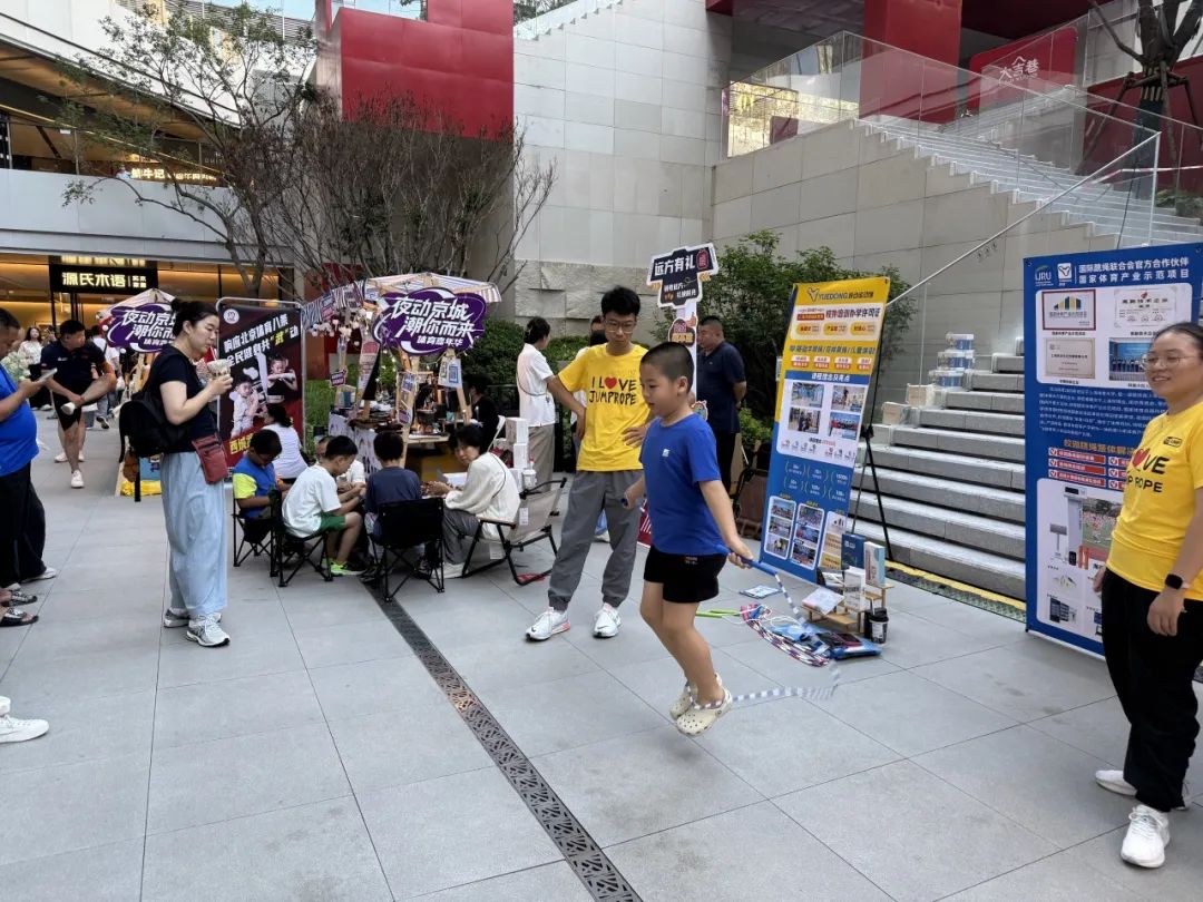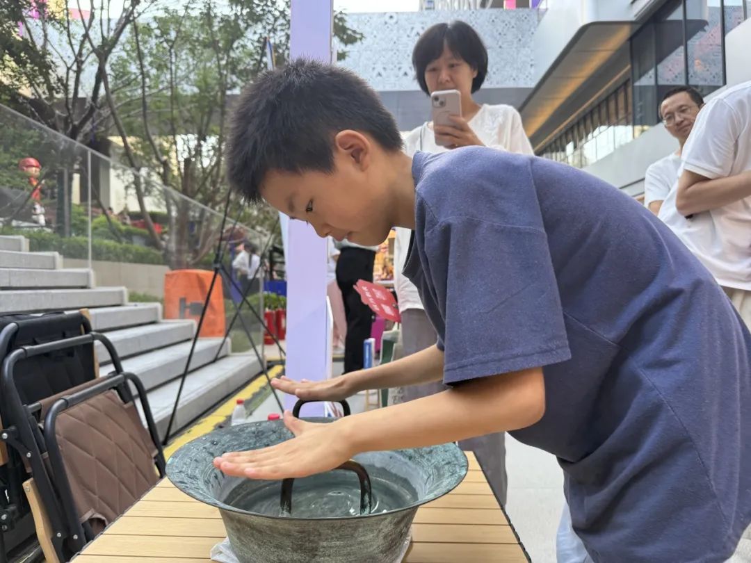 此外,“远方有礼”推出两项特色活动,巧妙融合非遗技艺与体育精神,让市民在运动中感受文化魅力。“鱼洗搓盆”装置,上演了一场传统智慧与科学原理的对话,孩子们围着装置反复尝试,在惊叹中体会传统工艺蕴含的智慧。“绳结解锁大挑战”更具巧思,参与者累计跳绳次数可兑换鲁班锁解谜机会,让运动耐力与空间思维完成“双重碰撞”。家长与孩子协作闯关,成为市集里的亲子打卡热点。