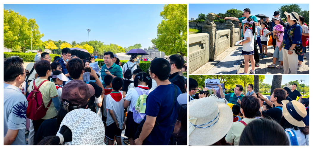 走进宛平城,勾老师拿出珍藏的老照片,对照眼前城墙为大家讲解。通过介绍,大家了解到这里曾是拱卫京城的军事重镇,明清时商贾云集;抗战时期成为主战场,城墙上至今留存有弹痕。大家漫步古城街巷,脚下砖石、斑驳城墙成了“活教材”,孩子们听得格外专注,抗日英烈的壮举仿佛在眼前浮现。