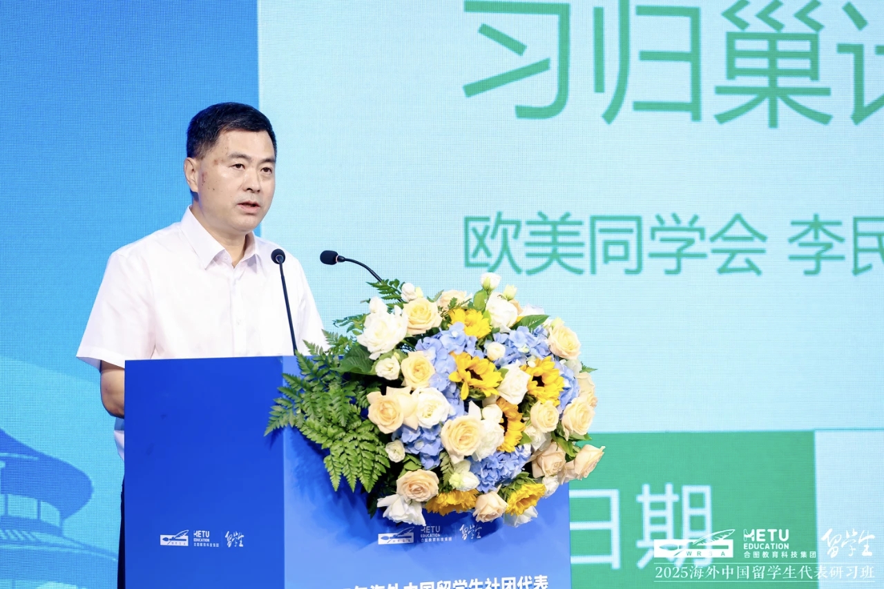 2025年8月,由欧美同学会主办,合图教育科技集团、《留学生》杂志社承办的2025年海外中国留学生社团代表学习贯彻习近平总书记重要贺信精神研习班在欧美同学会会址举办。欧美同学会副会长、中国教育国际交流协会会长刘利民,欧美同学会副会长、《留学生》杂志理事会理事长姚望,欧美同学会秘书长李民、副秘书长滕剑峰,欧美同学会留美分会副会长、清华大学人工智能国际治理研究院秘书长鲁俊群,欧美同学会青委会副秘书长、合图教育科技集团董事长刘峰出席开班式,来自百余所世界名校中国留学生社团组织的留学生代表参加。开班式上,举行了海外高校中国留学生回国实习“归巢计划”发布仪式。开班式由滕剑峰主持。