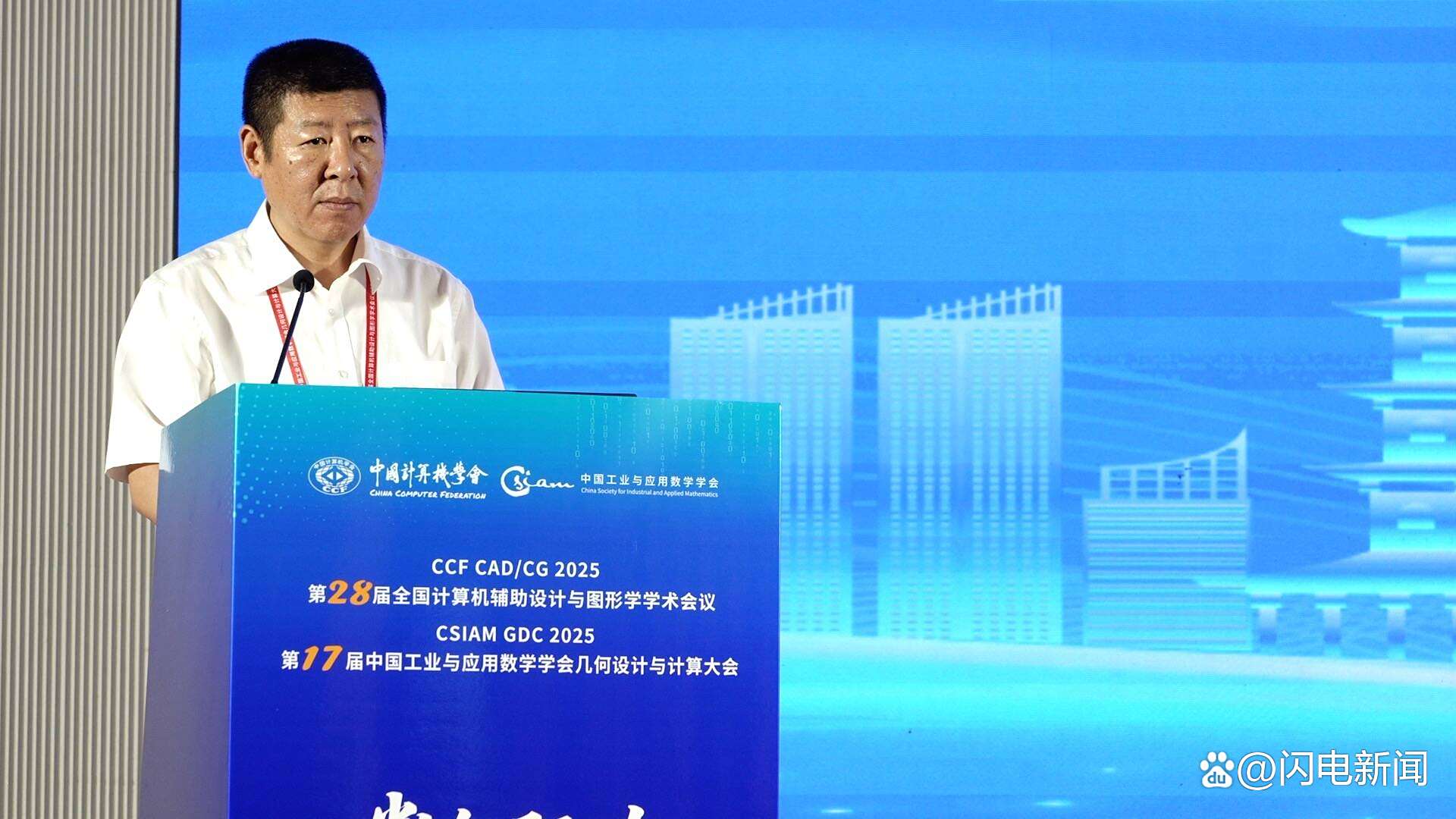 中国计算机学会副理事长、中国科学院院士、清华大学胡事民教授,以及中国工业与应用数学学会副理事长、北京大学汤华中教授分别代表学会致辞。他们共同强调了基础研究与应用转化协同发展的重要性,并对大会在推动产学研深度融合与创新人才培养方面的作用寄予厚望。