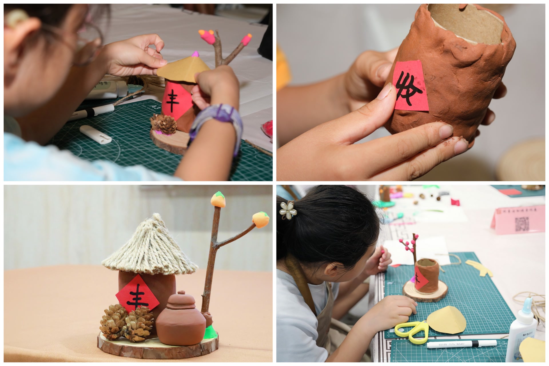 在手工体验环节,同学们在科普老师的指导下亲手捏制陶仓。从揉泥、塑形到粘贴纹饰,每一个步骤都充满挑战与乐趣。