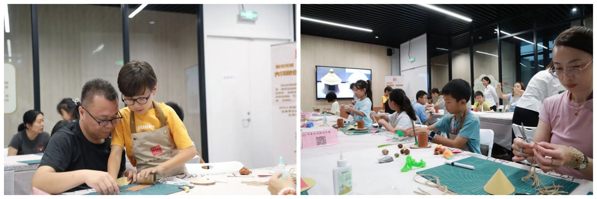 家长们也忍不住参与其中,亲子协作完成作品。
