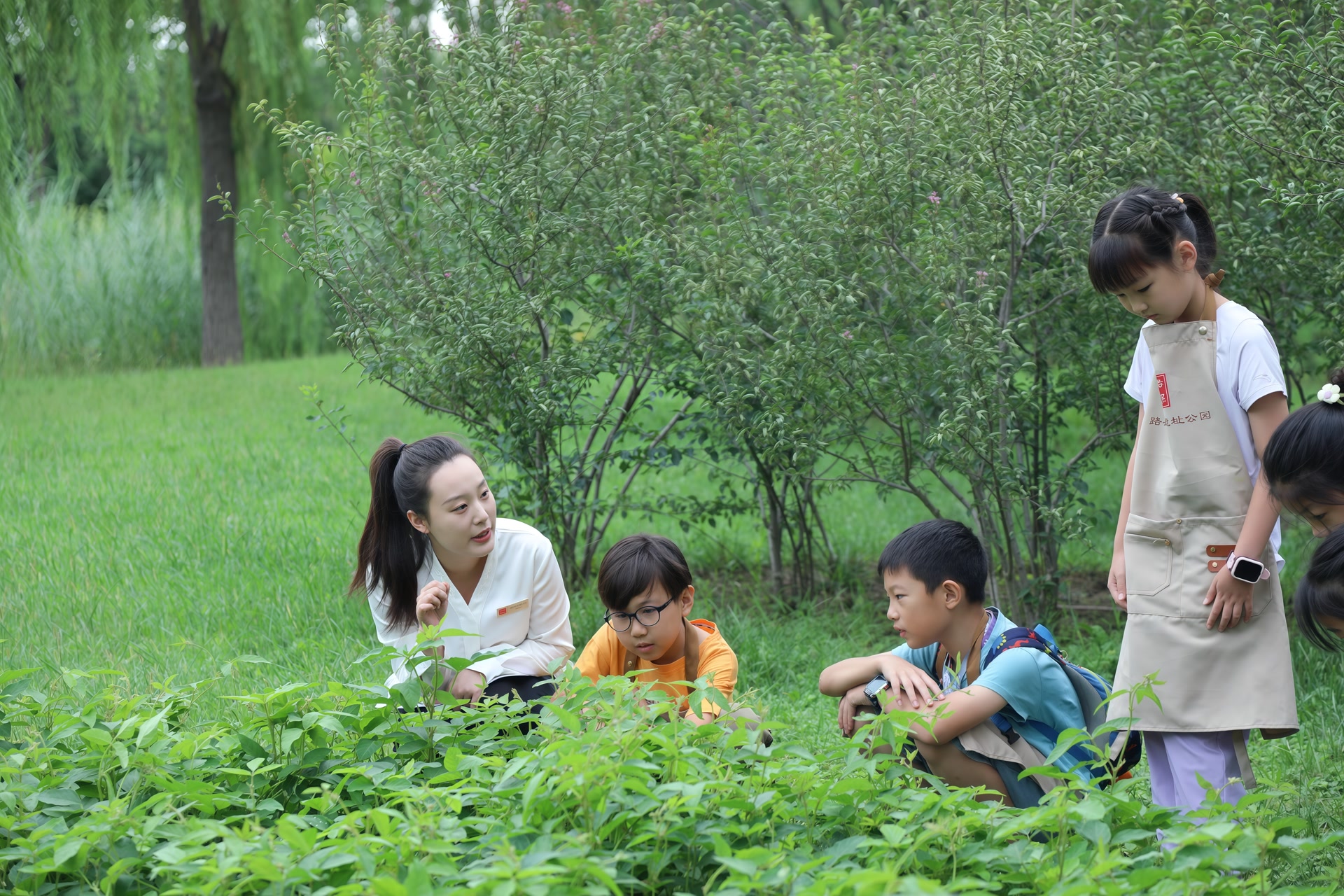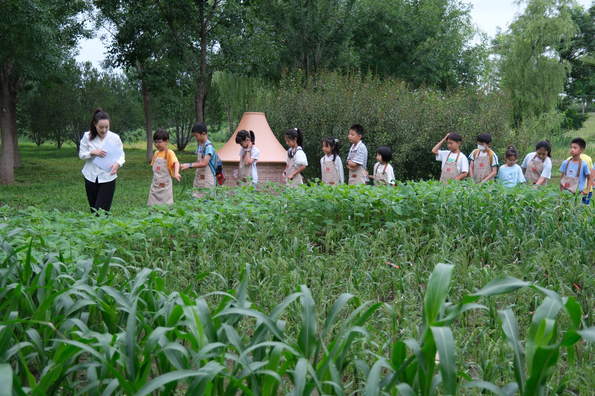 在科普老师的带领下,同学们来到路县故城博物馆西侧的五谷种植区,开启 “五谷形态解密”之旅。