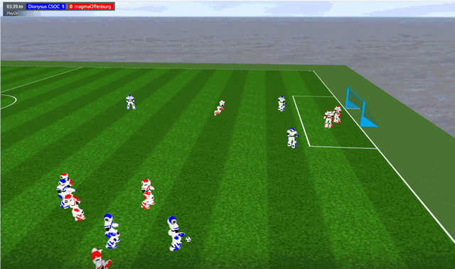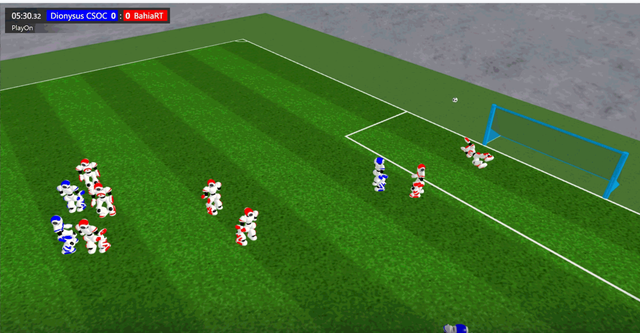 RoboCup(Robot World Cup Initiative)始创于1996 年,旨在通过机器人足球竞赛推动人工智能与机器人技术的发展,其宏愿是至2050年组建一支能够战胜人类世界足球冠军的全自主机器人队伍。其中,Simulation League(仿真联赛)作为 RoboCup 的核心子项目之一,重在让各国团队开发自主软件代理在三维模拟环境中操纵仿真机器人进行对抗足球赛,重点挑战控制、团队协作和实时决策策略。