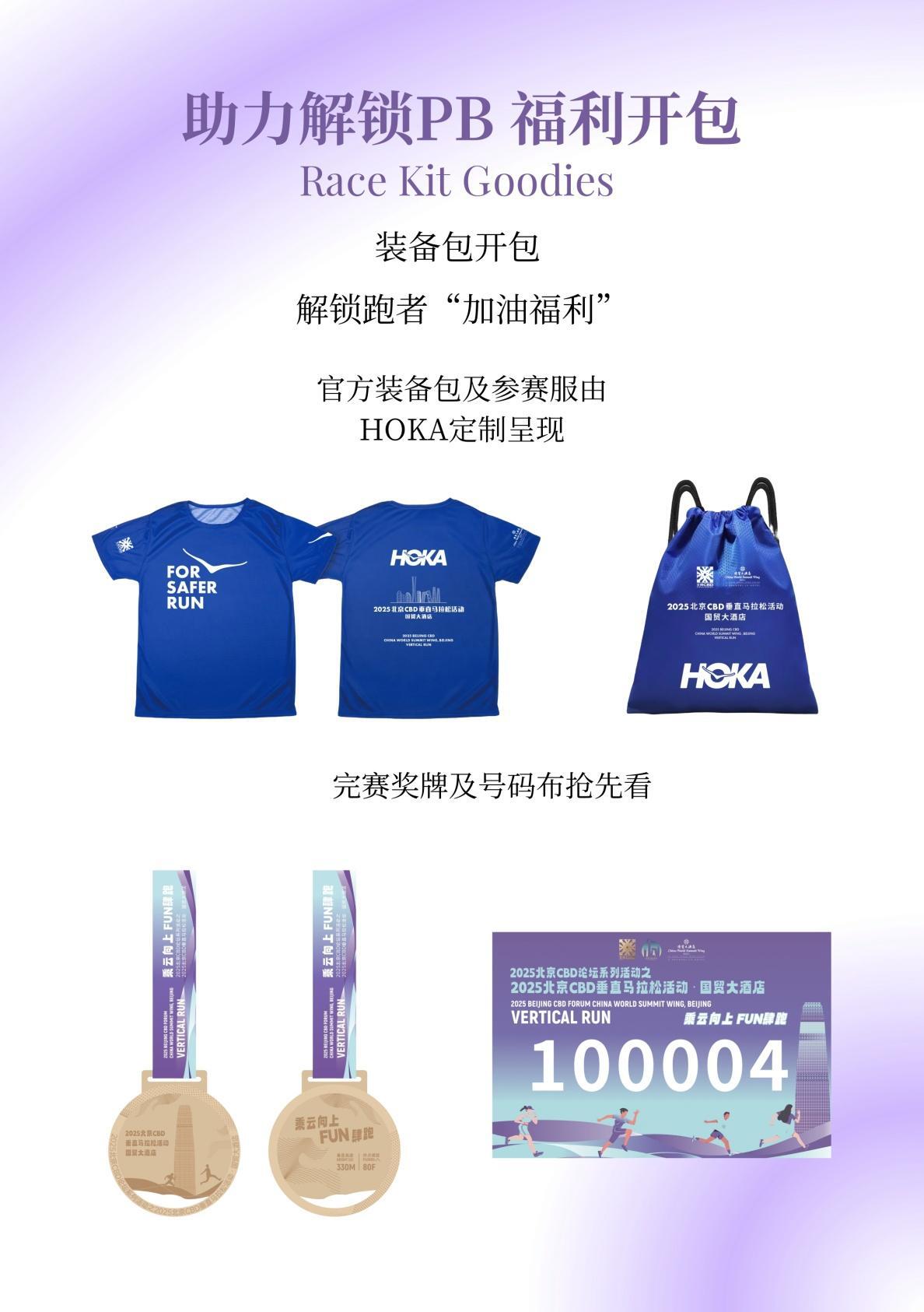 报名成功参赛人员均可获得由HOKA定制呈现的官方参赛服、参赛包。