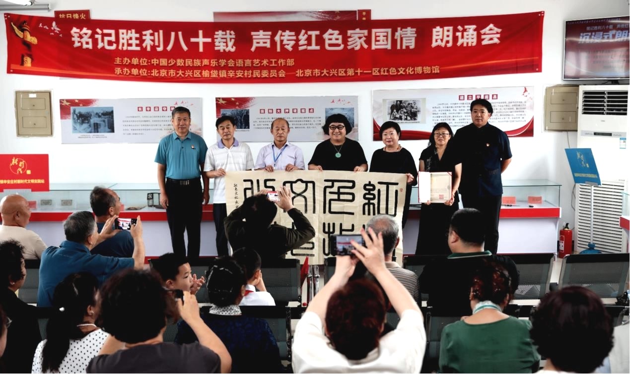 近日,由中国少数民族声乐学会语言艺术工作部主办,北京市大兴区第十一区红色文化博物馆、北京市大兴区榆垡镇辛安庄村民委员会联合承办的 “铭记胜利八十载 声传红色家国情” 沉浸式朗诵会,在北京市大兴区第十一区红色文化博物馆圆满落幕。活动紧扣纪念中国人民抗日战争暨世界反法西斯战争胜利80周年主题,以语言艺术为纽带,在京南抗战热土上打造了一场兼具历史厚重感与情感共鸣力的红色文化活动,更以鲜活的形式为现场所有人上了一堂生动的党课。众多文化学者、艺术工作者与群众代表齐聚辛安庄这片曾见证烽火的土地,共同参与这场红色记忆的传承之旅。