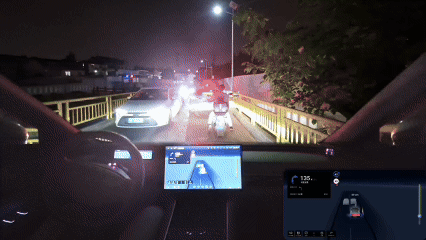 △夜间与行人、电瓶车、路边障碍物交替博弈,丝滑通行城中村。文远知行/供图