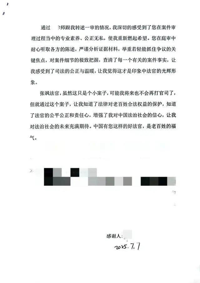 拿到判决书后,当事人专程从长春赶来北京,只为亲手为张飒送上一面锦旗及一封感谢信,“也许我这辈子就打这一次官司,”他红着眼说,“但我信法了。”