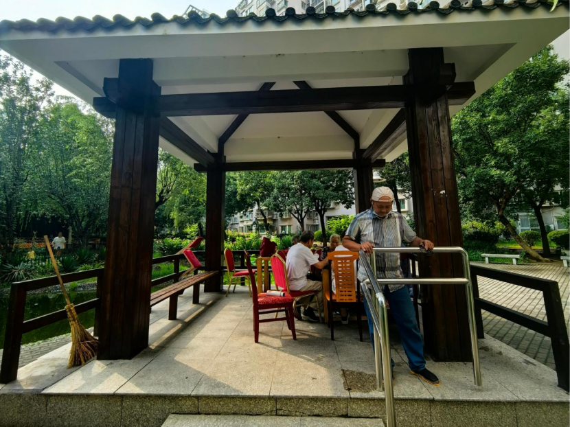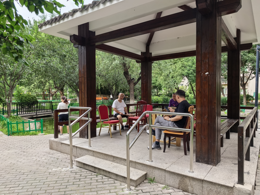 一周后,两组银白色扶手便安装在了凉亭台阶两侧。如今,老人们上下台阶时能够稳稳地扶着新安装的扶手,以往脸上的担忧也转变为安心与宽慰的笑容。