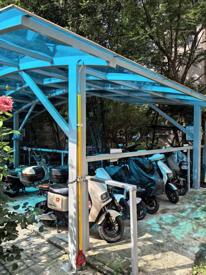 在切实解决老年人出行安全问题的同时,社区同步推进了电动车充电棚的安全升级工作。西府景园小区的充电车棚日常使用频率高,可同时为多辆电动车充电,但因未配备应急消防设备,一直是居民隐忧的焦点。