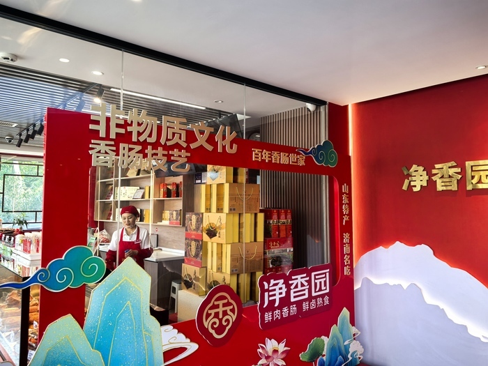 近三十年,净香园迎来加速发展的转折。1993年赶上国企改制,第四代传承人张华在国企停薪留职以后,和妻子王玉美推着三轮车在老天桥的周边售卖香肠等各类熟食,还带出了四位学徒。1995年张华在工厂下岗后,得到家族认可,再立“净香园”老号,“净香园熟肉总店”在天桥区北坦街道开业。2013年成立公司到现代化食品加工基地落地,筑牢规模化生产根基;2017年,山东净香园食品开发有限公司组建,系统化门店运营体系成型,企业自此步入扩张快车道。如今,52家直营店已遍布济南城乡,老字号的新征程正式开启。