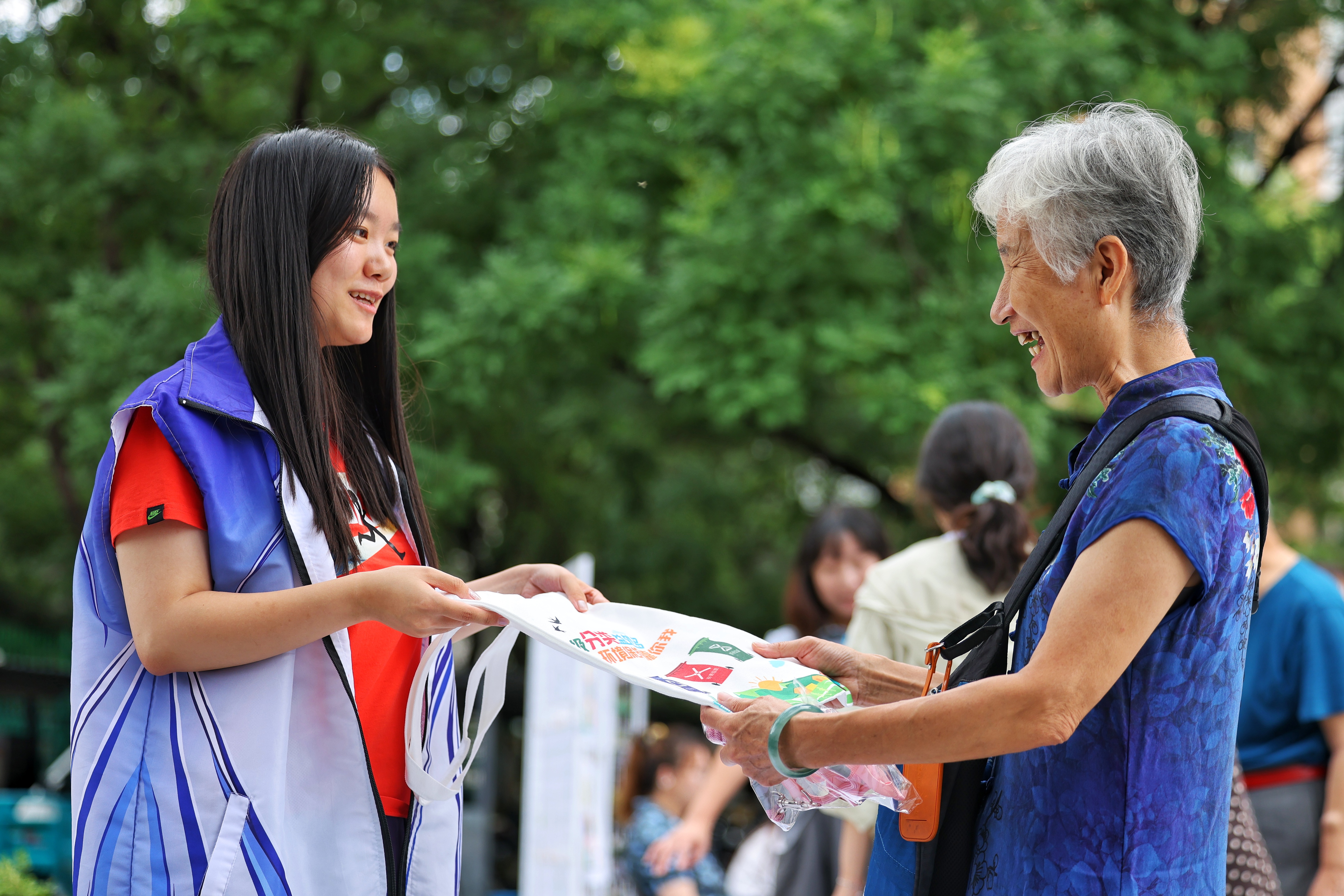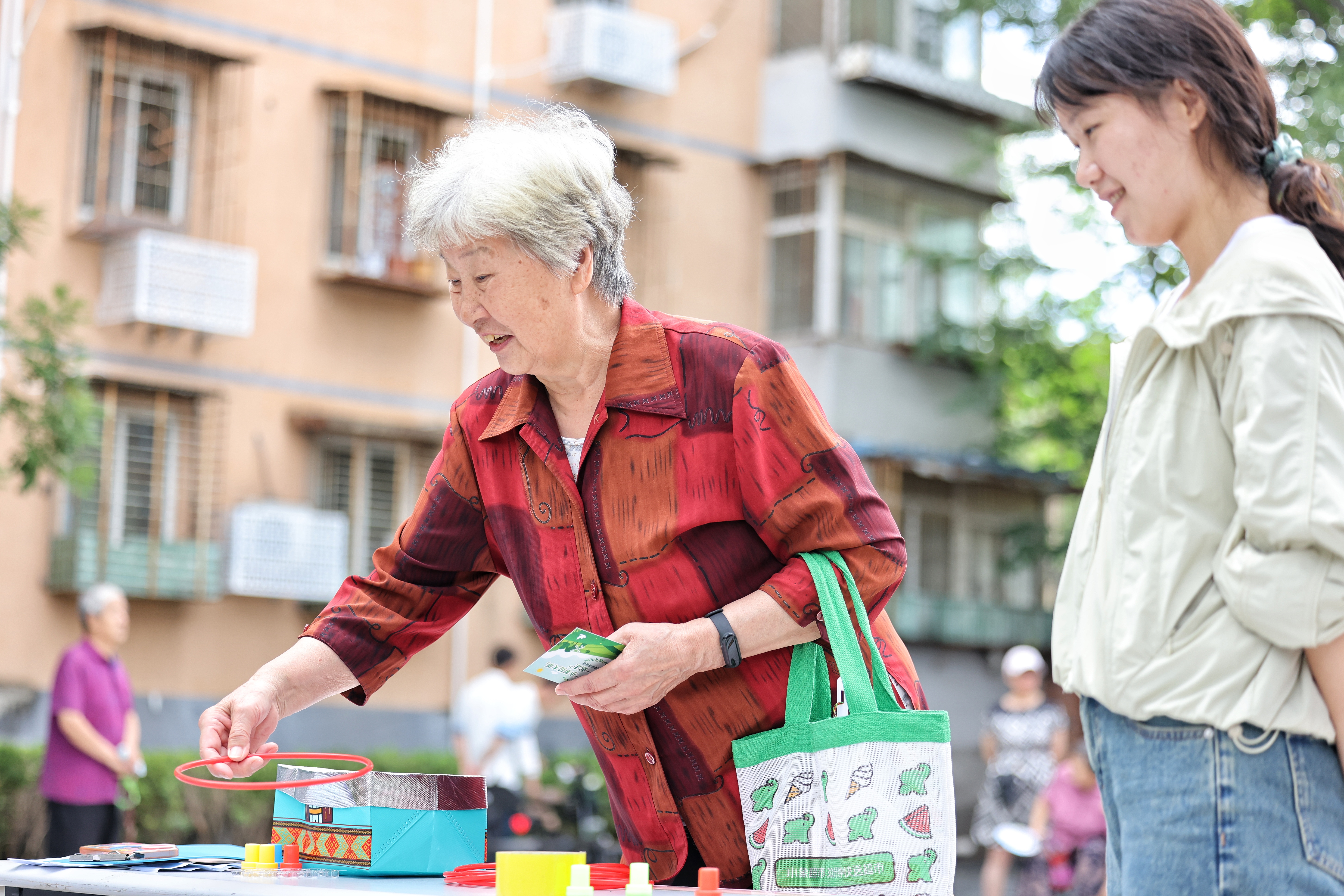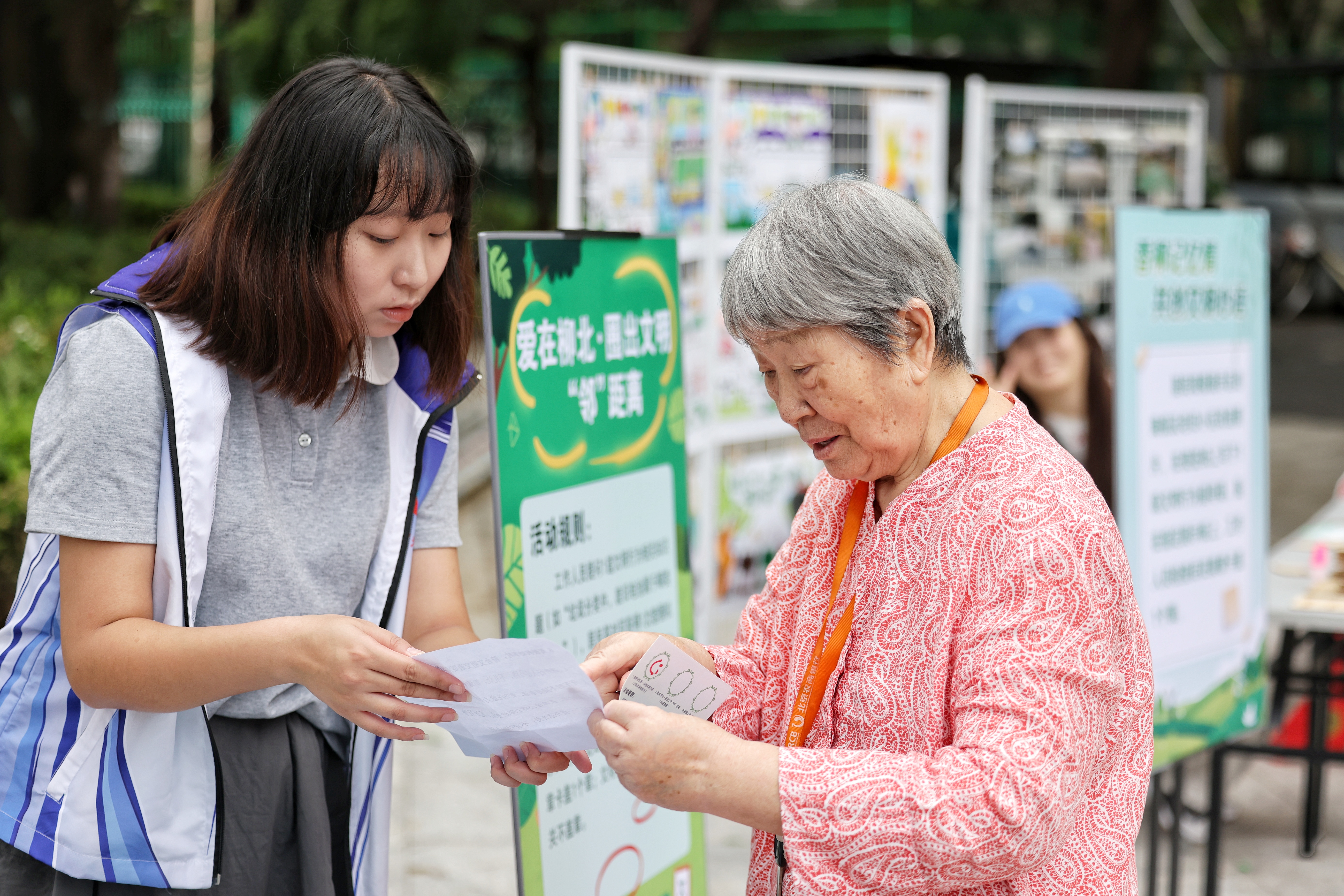 28日的互助集市上,便民服务摊与文明倡导区相映成趣。青少年创作的文明海报、社区改造对比照吸引目光,“健康防护角”详解蚊虫防治,志愿者现场科普“翻盆倒罐”技巧。