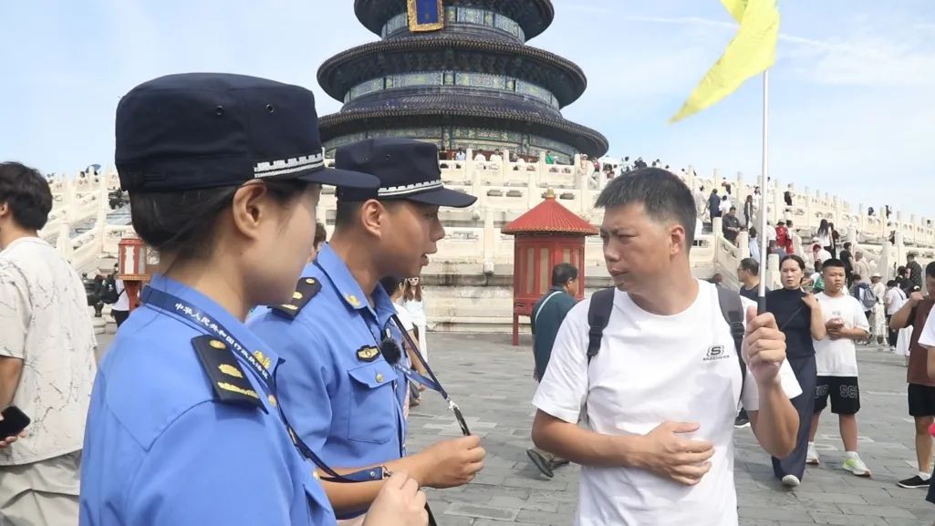 暑期尾声热度不减,天坛公园作为北京中轴线核心地标依旧游人如织。为保障游园环境秩序,守护历史名园风貌,8月26日,东城区天坛街道综合行政执法队与天坛公园管理处走进天坛公园联合开展执法巡查与普法宣传行动,以“执法筑屏障+普法润人心”双轨模式,为市民游客打造安全有序、文明和谐的游览环境。