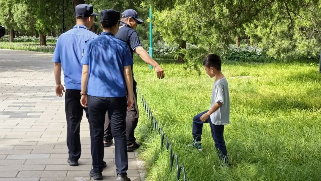 联合巡查过程中,执法人员发现有家长带孩子踩踏草坪拍照时,立即上前耐心劝阻,帮助孩子树立文明游园的意识,让文明理念融入每一次游览体验。