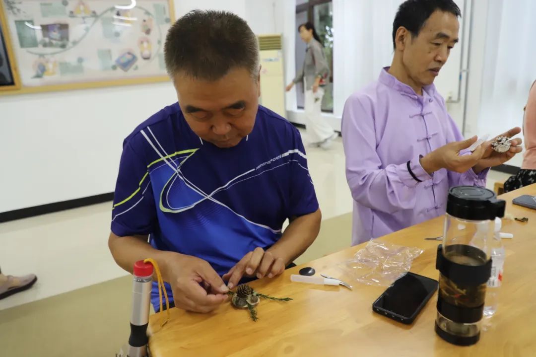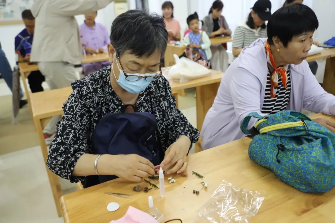 随后,地区新时代文明实践所(乡党群服务中心)工作人员带领大家DIY制作“妙手生香”中草药冰箱贴。甘草、白芷、十字果、落叶松……大家根据个人喜好选择药材,再用胶水将中药材固定在带有磁吸片的底托上,一个个独具特色的中药草木冰箱贴就做好了,大家互相交流制作心得,在动手中真切感受到了中医药文化的魅力。