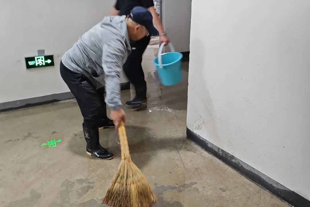 高丽营镇成立26支应急队伍,凝聚起“支部牵头、党员带头、群众参与”的强大防汛合力,全力保障辖区安全度汛。7月27日,夏县营村“两委”工作人员对辖区内重点位置开展全面排查,发现地下车库存在渗水现象。工作人员立即清扫积水,并协调相关单位对漏水点进行修复,及时为民解忧。
