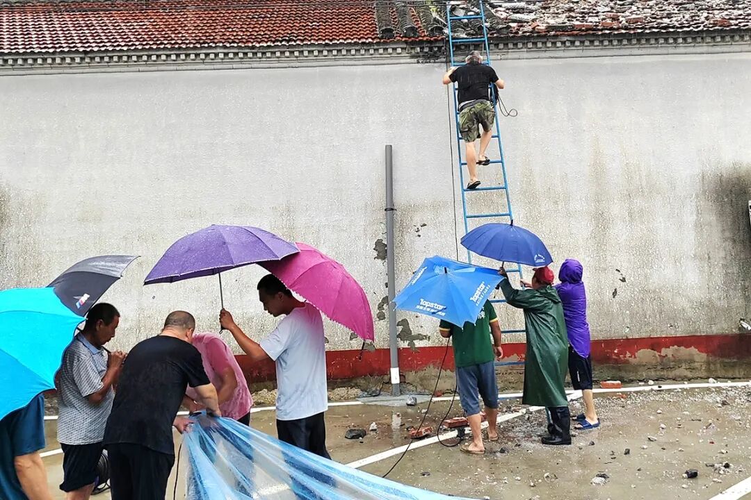 民有所呼,我有所应。杨镇全力做好汛期各项工作,各村(社区)党员干部冲锋在前,应对突发情况。7月29日,沙岭村村委会接到村民郝先生求助,其房屋因降雨屋脊滑落、雨水进屋。工作人员立即到场,郝成华等8名村民赶来帮忙,众人合力帮忙遮盖漏雨房屋,处理屋内积水,彰显了风雨中的守护与温情。