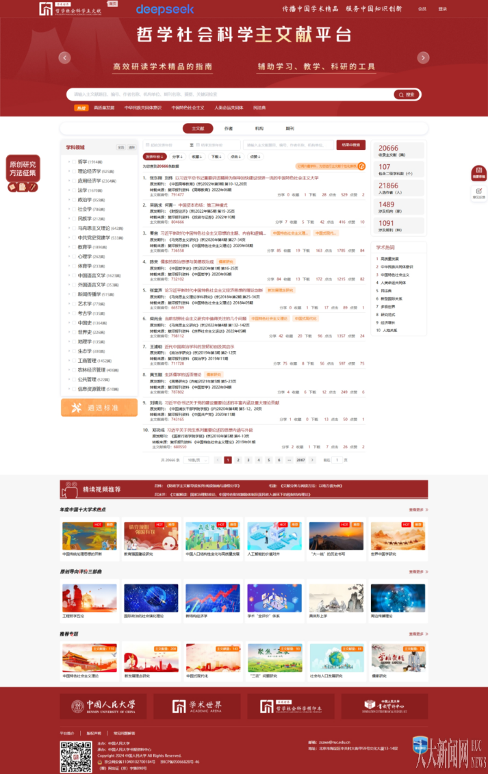 据悉,中国人民大学未来将面向国家重大战略需求,以学术共同体为中心,进一步加强复印报刊资料系列数据库和“学术世界”建设,将“哲学社会科学学术文献高质量数据集”建成中国自主的哲学社会科学基础设施,有力支撑哲学社会科学垂直大模型开发,提升国家文化软实力。