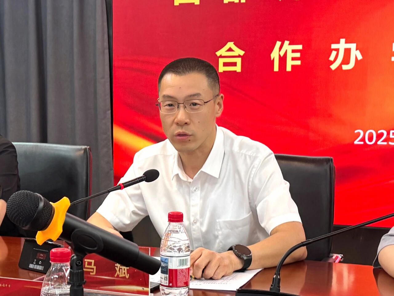 当前石景山区正全力推进“三区建设”、打造新时代首都城市复兴新地标,对教育支撑能力提出更高要求。石景山区副区长马斌在讲话中指出,首师大附中此次进驻,将为区域教育注入创新活力。展望未来合作,马斌提出四点期望:一是惠及学生成长。期待合作开启学生全新成长维度,提供更优质资源、前沿理念、专业指导和丰富活动,助力开拓视野、增长才干。二是赋能教师队伍。希望合作成为教师宝贵提升平台,通过深度交流学习先进教学方法与管理智慧,激发教育创新活力。深化在教师专业发展、教研能力提升、骨干培育等方面的合作,锻造石景山区高素质专业化教师队伍。三是聚焦集团发展。期盼首师大附中将优质资源和深厚智慧精准聚焦、持续倾注于苹果园教育集团,构建优质均衡、特色鲜明、充满活力的区域教育新生态。四是拓展合作领域。希望此次合作为石景山区与首都师范大学在更宽领域、更深层次合作架设桥梁,探索人才培养、科研协同等更多可能。