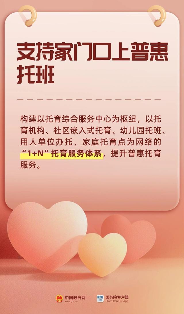 国家出台多项政策,完善生育支持政策体系和激励机制,从育儿补贴、免费学前教育、生育津贴、医保报销等方面,降低生育、养育、教育成本,推动建设生育友好型社会。