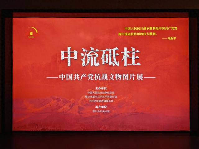 为纪念中国人民抗日战争暨世界反法西斯战争胜利80周年,8月12日,由中国人民抗日战争纪念馆、鄂尔多斯市文学艺术界联合会、中共伊金霍洛镇委员会联合主办,鄂尔多斯美术馆承办的《中流砥柱——中国共产党抗战文物展》巡展开幕,现场各相关单位负责同志、部分党员干部、学生代表、村民代表及媒体记者等150余人参加启动仪式。