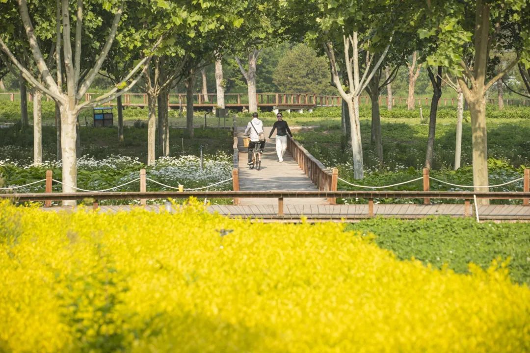 亦庄新城滨河公园也是休闲的好去处,河水清澈见底,绚烂的晚霞倒映在水中。傍晚时分,约上三五好友,沿着河边感受着微风的轻抚,欣赏着沿途的美景,一天的疲惫都烟消云散。