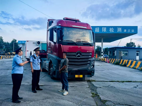 原来,九支队延庆执法队在当日巡查结束后,接到综检站紧急通知,一辆大件运输车辆未按超限运输通行证规定路线行驶,执法人员立即抵达现场调查。经核实,司机确因主观原因违规行驶,执法人员依法对其作出处罚并责令重新办理通行证。由于该车辆运输的是精密军工设备,需持续制冷保障货物安全,若按常规流程重新办证,货物可能因长时间滞留而受损。面对当事人的紧急求助,延庆执法队迅速启动协作机制,主动联系到延庆公路分局。