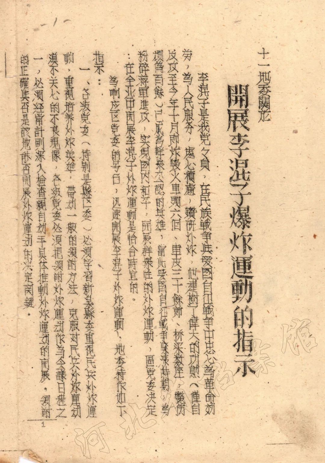 《十一地委关于开展李混子爆炸运动的指示》(河北省档案馆馆藏)