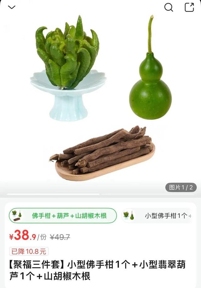 约350克的大型佛手柑29.8元一份;小型绿宝石葫芦+小型佛手柑,优惠价29.9元一套;加上山胡椒木根的“三件套”也不到40元。在叮咚买菜APP上,这些文玩绿植排在了“鲜花绿植种草榜”的前几名。