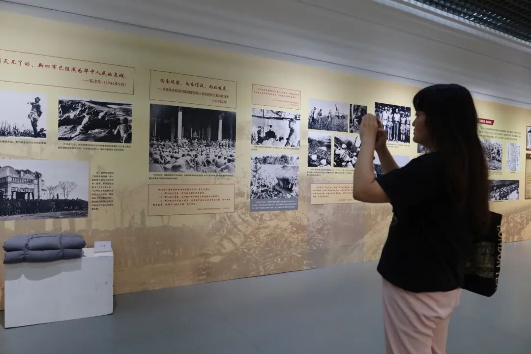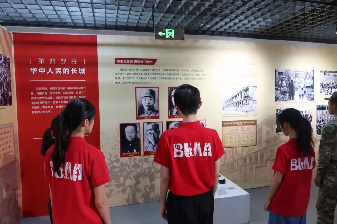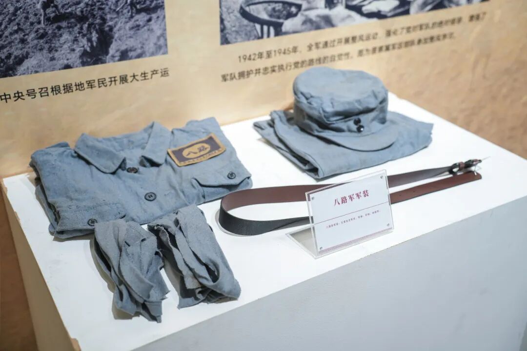 “这里有军号,还有弹药箱,太震撼了。”北航国旗护卫队成员们一边参观一边交流。记者在展览现场看到,有磨损严重的干粮袋、行军壶、弹药箱、军用挎包、草鞋、土碗、蓑衣、子弹袋等实物展品,将观众带到了烽火硝烟的岁月。墙上从将领到士兵,那一张张年轻但坚毅的面孔,充分展示了中国共产党领导的抗日武装的精神面貌。