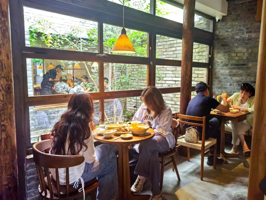 老板王浩是个对胡同有情怀的人,说起开这家店的初心便侃侃而谈:“我想守护这条胡同的烟火气和人情味,让大家都能体会到回家吃饭的感觉”。店里做的是中式融合菜,很多都是老板自己研究的私房菜,比如家烧海味白玉丝瓜、鲜椒豆豉小炒鸡与泡菜包浆豆腐等,吃起来特别有家的味道。最让人惊喜的是二层的露台,吃完饭可以站在露台上看胡同里的灰瓦屋顶,风里带着旁边院子里的槐花香,别有一番风味。