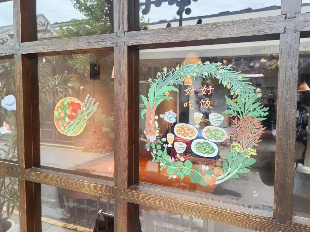 门口贴着“好好吃饭”的喜小葵是五道营胡同里的新鲜面孔,但已经凭着独特的氛围圈了不少粉。店面不到200平方米,门口摆着两盆开得正好的绿植,桌子上和墙上摆放着有烟火气的照片,推门进去像走进了朋友家的客厅。