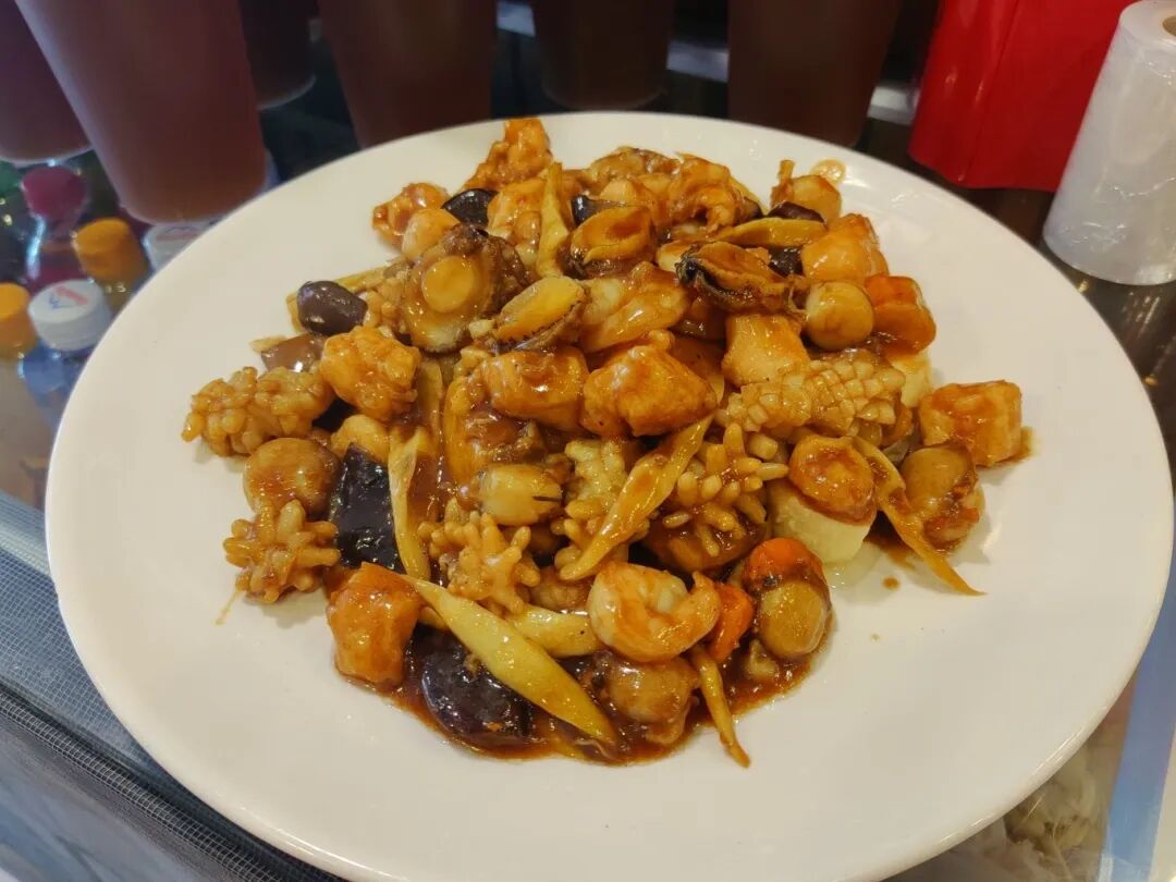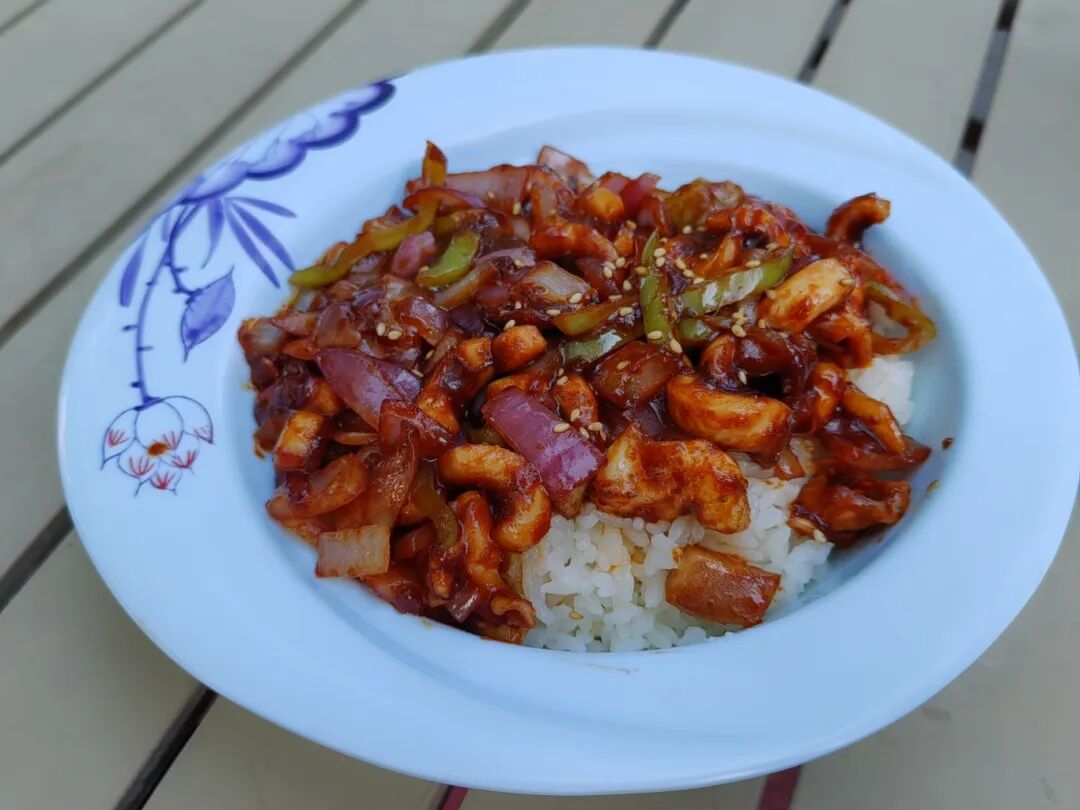 旁边的瓷器儿私家鱿鱼饭则是“打工人的宝藏午餐店”,老板以前在IT行业工作,2015年辞职创业开了这家小店。“我们店没有员工,从选料到制作我都自己盯着。店里的鱿鱼饭都是用的冰鲜鱿鱼,为了保证口感,每天只用早上新到的货。”老板一边炒着鱿鱼饭一边说。老板把鱿鱼切成块焯水,用自己调的甜辣口秘制酱料和洋葱等蔬菜翻炒,还未出锅香味就能飘出老远。鱿鱼饭的分量很足,米饭上盖着满满的鱿鱼,拌着酱料吃最佳,鱿鱼弹牙有嚼劲,米饭吸满了酱汁,一口吃下去特别满足。老板是一个土生土长的北京人,很健谈:“我这个小店人均不到30块,实惠又好吃,我开店不光是为了挣钱,更是为了把咱们北京的人情味带给更多的人。”