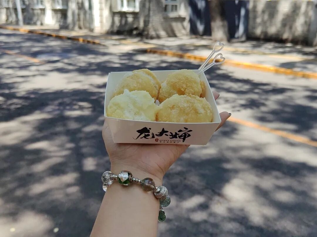 吃完正宗的天津菜,可以去离奥华餐厅不远的龙大婶饽饽铺带一份炸元宵,元宵是现炸的,需要等六七分钟。元宵咬开里面是巧克力馅和钙奶馅的,流心的馅料烫嘴却特别香,作为饭后甜点再好不过了。