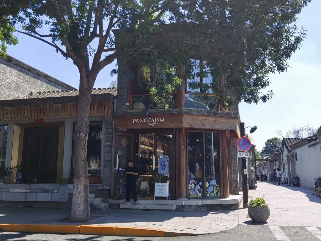 出地铁站向西便进入五道营胡同,骑行其间,仿佛踏入了一片藏在红墙灰瓦闹市间的“慢生活小天地”。这里没有主干道的喧嚣,只有挂着“好好吃饭”标语的温馨小馆,摆满LABUBU玩偶(泡泡玛特旗下经典IP形象)、只做美式的咖啡店和散发着茶叶清香的茶屋。