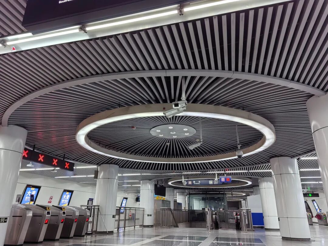 作为紧邻天坛公园的5号线天坛东门站,站内最大的亮点就是酷似天坛公园祈年殿的屋顶设计,让出站的乘客一下就能感受到天坛公园独特的文化氛围。站内还设有人民教育出版社的文创小店,一个大大的鲁迅立牌在小店旁边,引得很多小朋友合影留念。