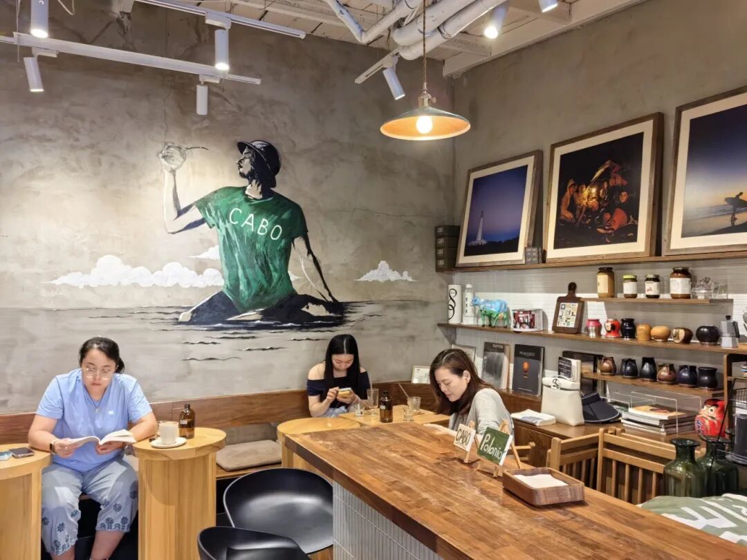 逛完天坛,向北骑大概5分钟就能到位于法华寺上的文创园区——天坛德必WE”北京街,里面有非常多的特色小店,逛一逛会发现不一样的惊喜,和别有洞天的生活状态。从西门进入,一家名叫CABO coffee的咖啡馆映入眼帘,店门口坐着许多外国顾客,他们正在一边喝着咖啡一边晒日光浴。CABO coffee已经开了六年多,店面不算太小,装修很有特色,墙上挂满了主理人在世界各地拍的照片,门口还挂着“宠物友好”的牌子,有很多人带着宠物狗来喝咖啡。进到店里,你会发现这里没有人拿着电脑工作,也没有人忙着拍照打卡,大家要么在和朋友聊天,要么在看书。店里的负责人坦言:“其实我们店里的咖啡并没有做到行业顶尖,都是一些常规款,来我们店与其说是喝咖啡,不如说是在享受一种松弛的生活状态。”一个人在窗边读一本喜欢的书;和几个朋友一边喝着咖啡一边诉说着理想;带着自己的宠物一起来结交新朋友。在CABO coffee,咖啡不再是简单的饮品,而是一种生活方式的外在体现。