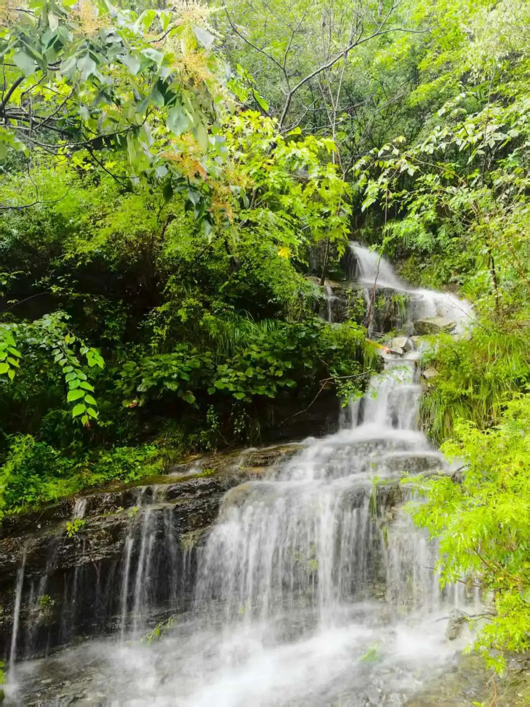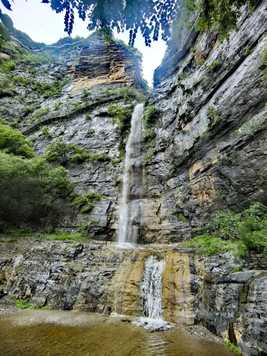 600米峭壁上的七彩玻璃栈道,走在上面如踩云端,脚下是云雾缭绕的山谷。三叠瀑布落差115米,从崖顶落下来,水声震耳,水花溅在脸上,凉丝丝的超过瘾。