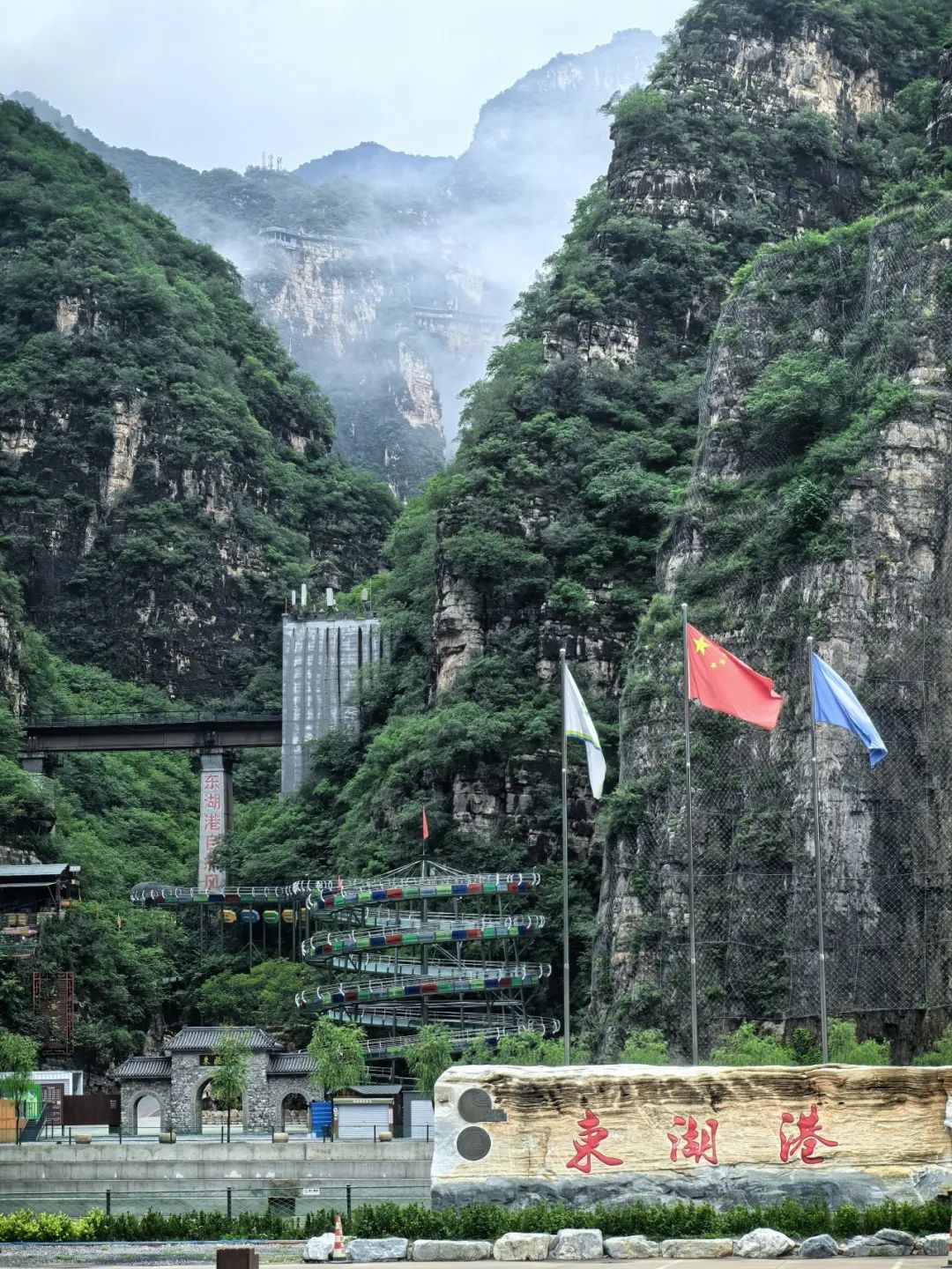 3.8公里漂流河道藏着180米落差,浪花追着橡皮艇跑,所有压力都被浪花冲走。长168米的青云玻璃栈道贴山而建,长158米的情天玻璃吊桥横跨峡谷,走在上面,看远处的山尖在云里若隐若现,像闯进了仙侠剧里的场景。