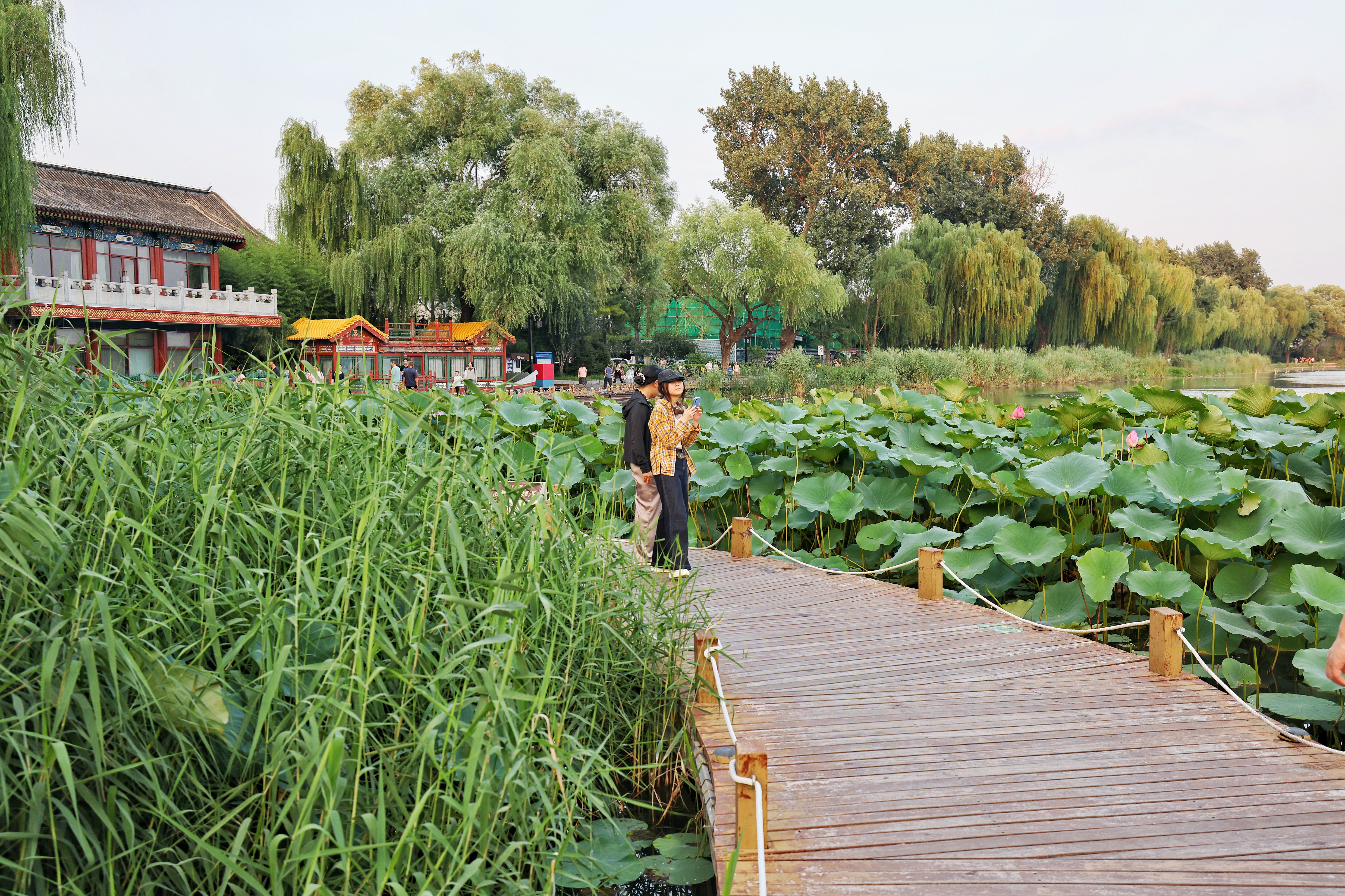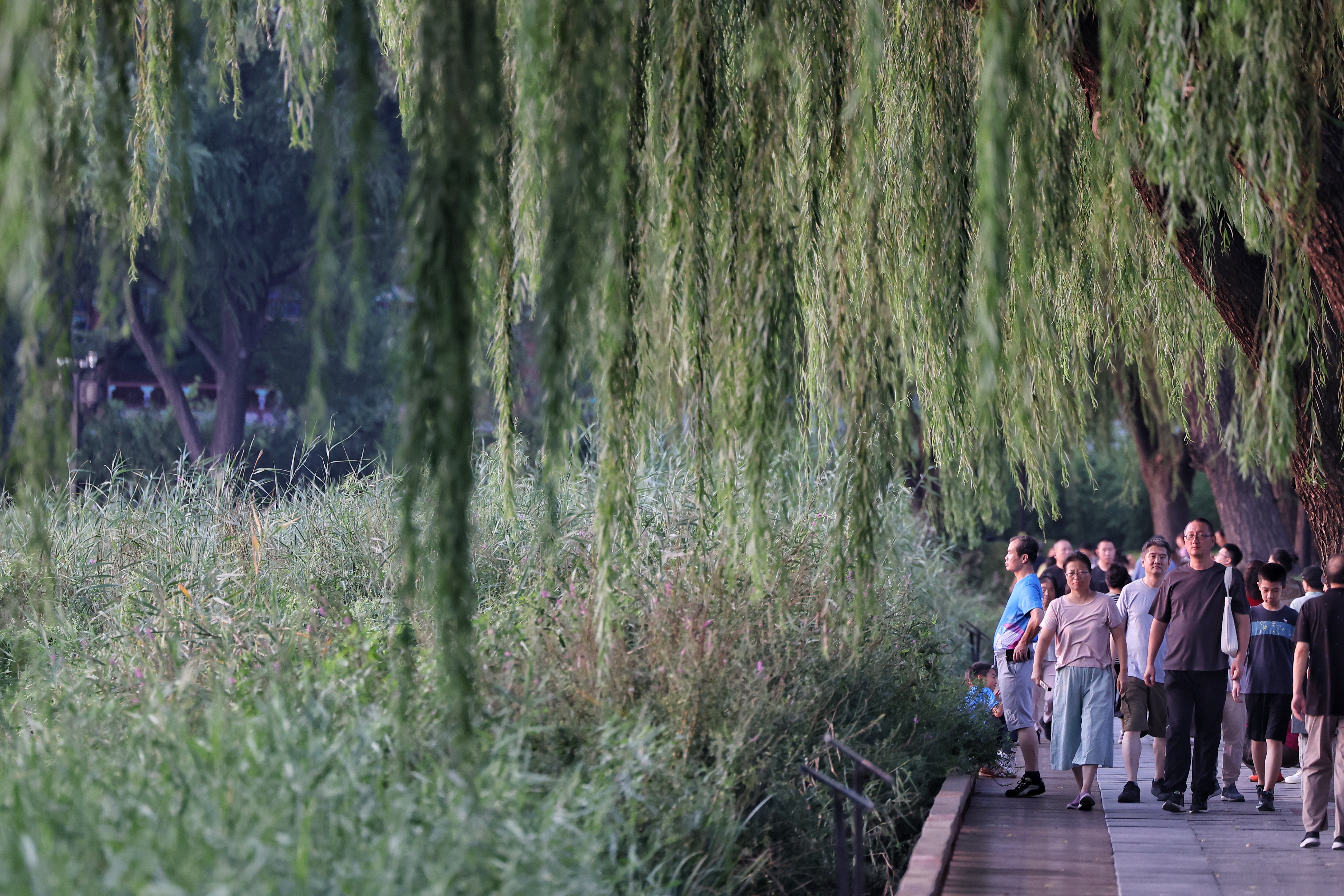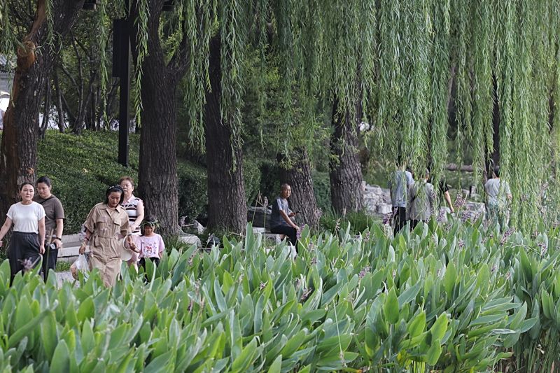 入秋的北京,秋高气爽。傍晚时分,什刹海西海湿地公园宛如一幅灵动的画卷,老人、孩子悠闲遛弯散步,水鸟在水中自在游弋,共同谱写着一曲人与自然和谐共处的悠闲“交响”。